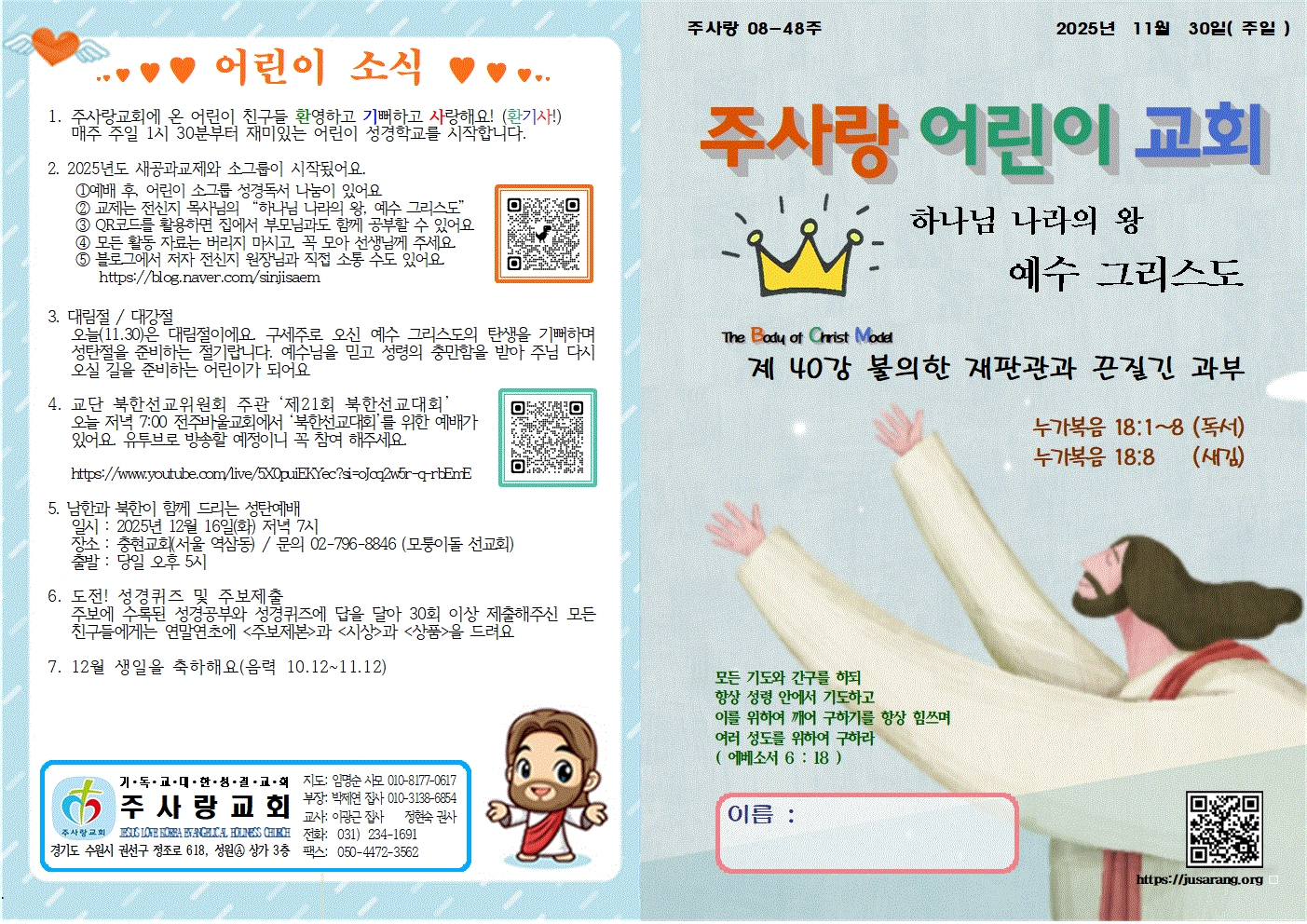128 [어린이예배] 하나인 성경 공과공부 (0)... 관리자 2025-01-12