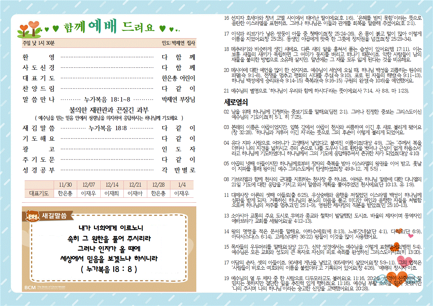 133 [어린이예배] 하나인 성경 주보가 나(0)... 관리자 2025-01-26